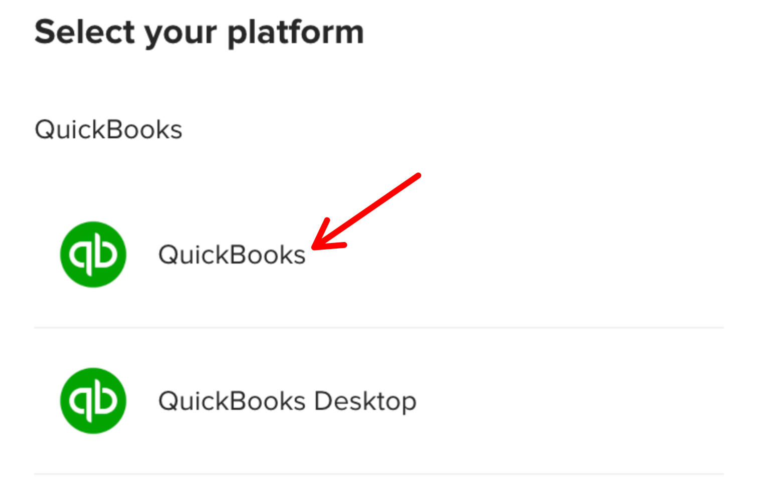 - After clicking on “Continue” button, a list of platforms will be displayed. Select “QuickBooks”