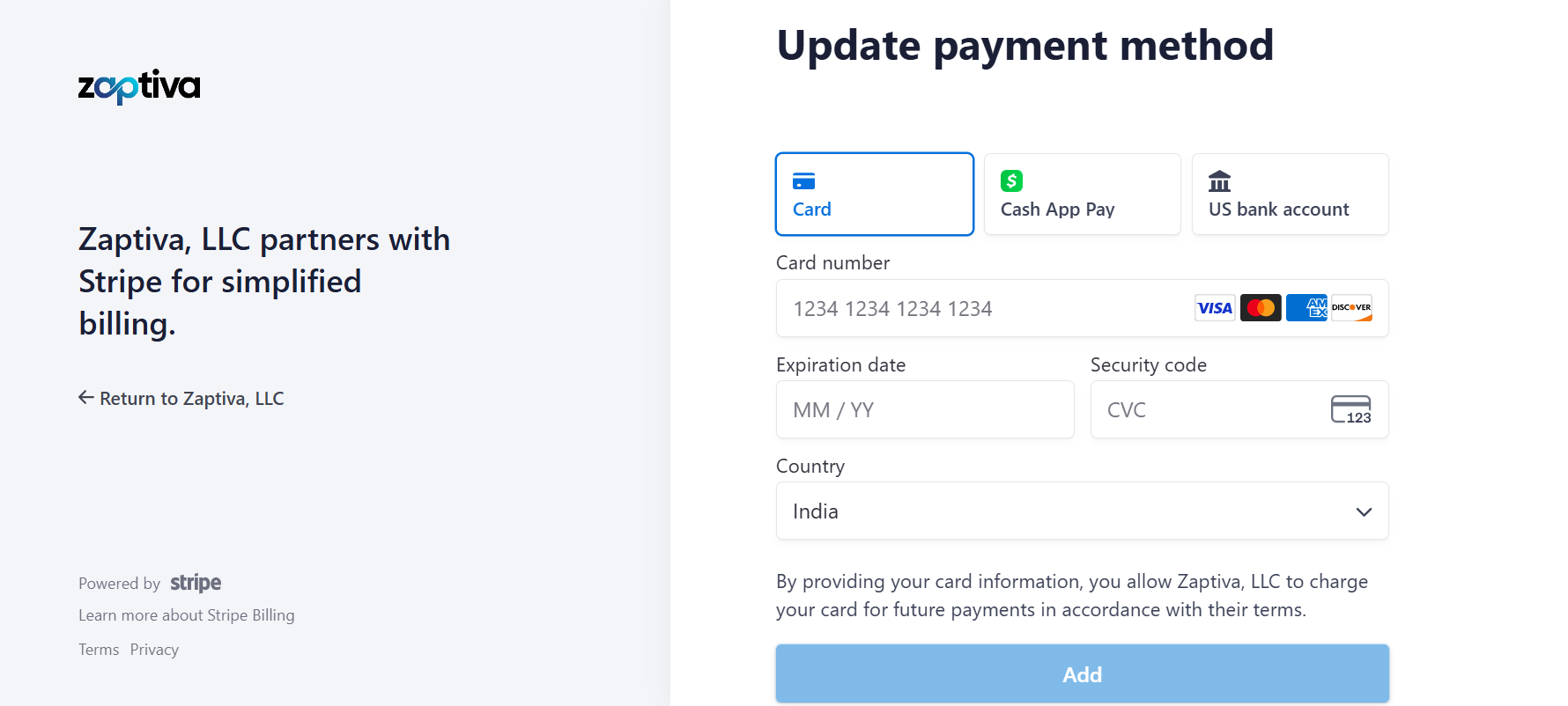 - By Clicking the 'Update Payment Information' link will redirect you to the Update Payment Method page, where you can securely add or update your payment details.