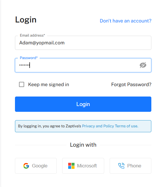 - Navigate to the URL: https://app.zaptiva.com/