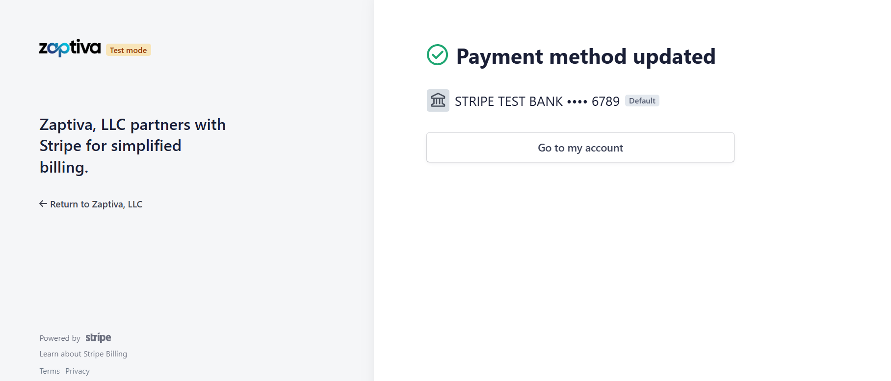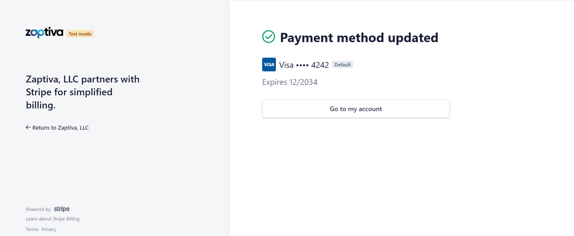 6. The updated payment method will be visible on the Billing page once the process is completed successfully.