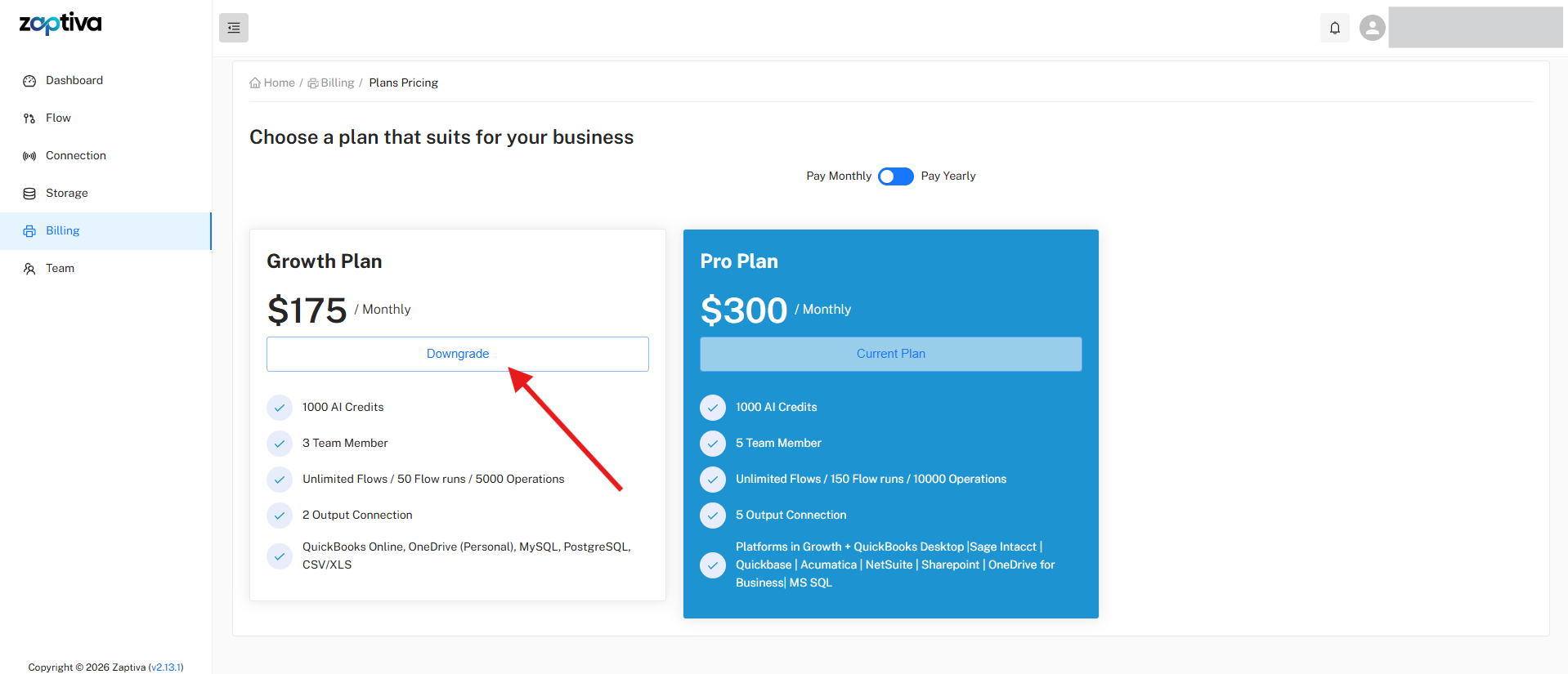 3. After clicking Change Plan, you will be redirected to the Pricing / Plans page. Here, you can: