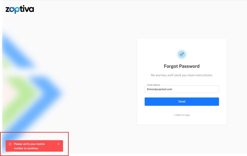 Unable to Reset Password – Mobile Number Not Verified