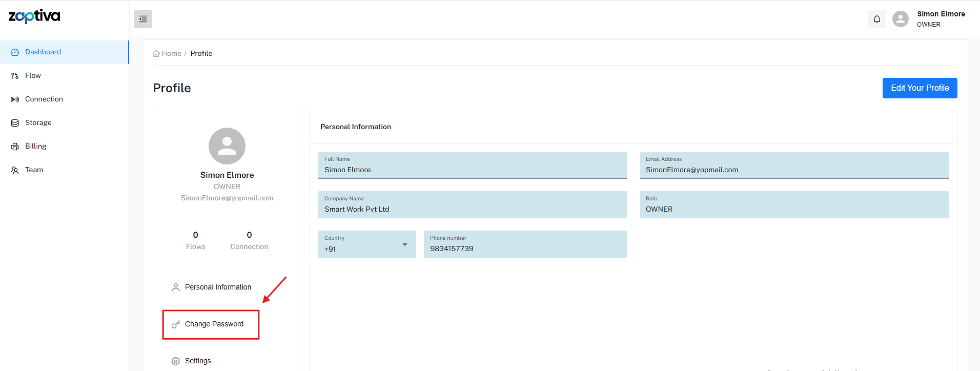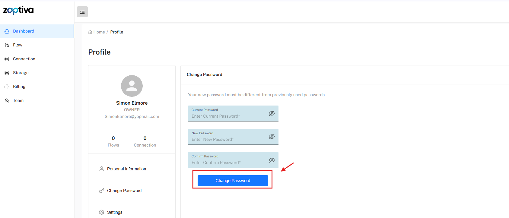 Follow the steps below to change your password in Zaptiva: