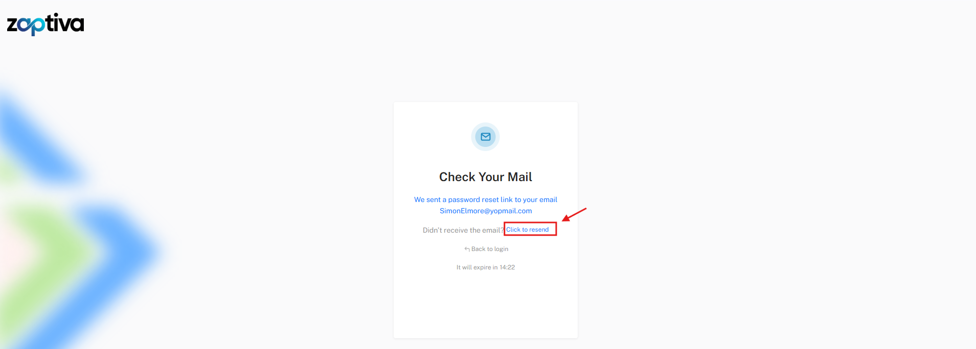 4. A reset link has been sent to your email. Check your inbox. If you don’t receive the email, click on “Click to Resend ” to receive the link again.