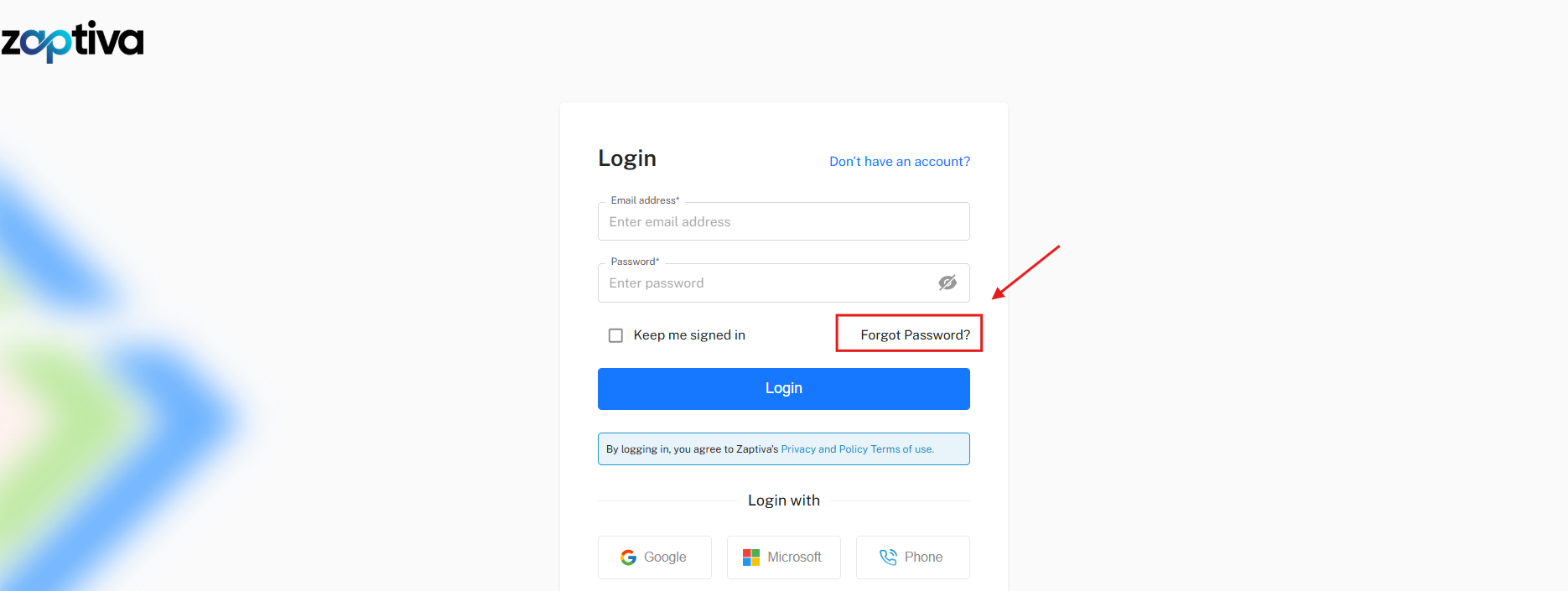 2. Log in to your Zaptiva account.